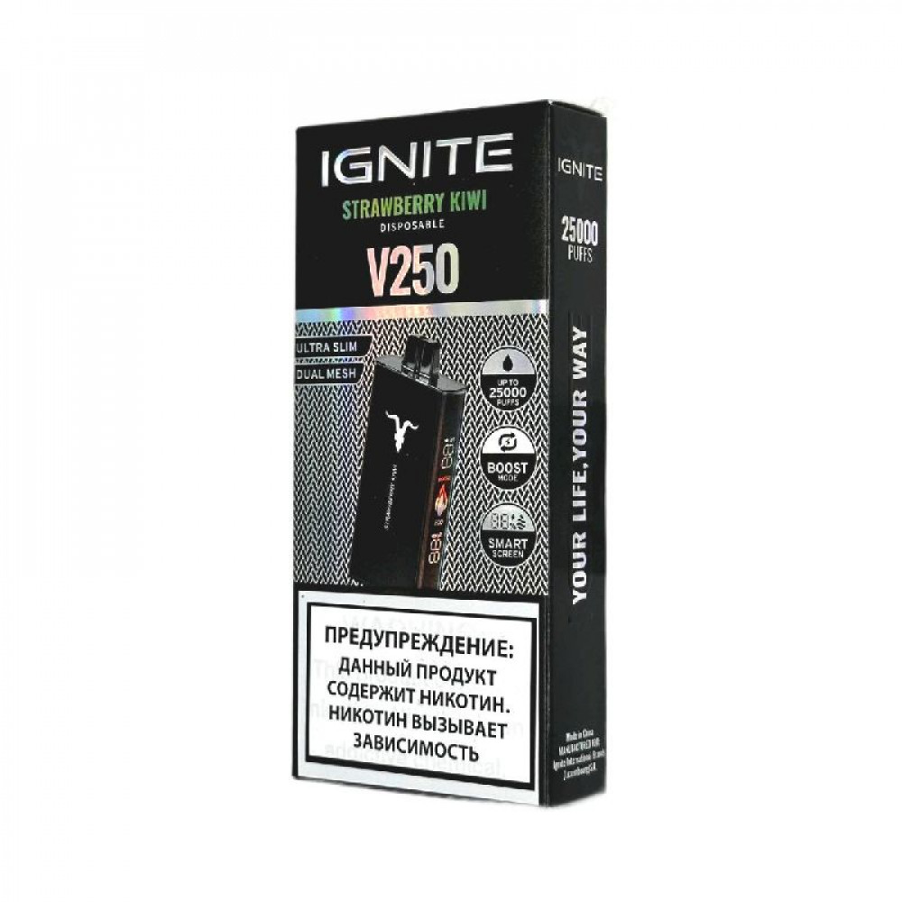 Электронная сигарета Ignite V250 Black 25000 - Strawberry Kiwi (Клубника киви) - купить в Пензе